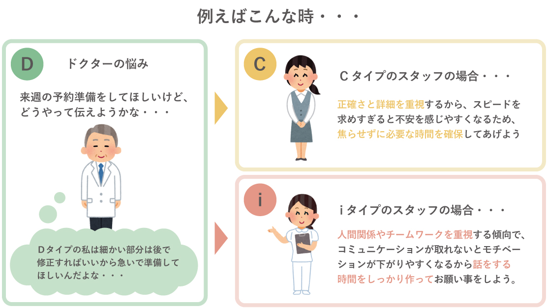 自分のタイプを理解するだけでなく、スタッフや患者様にタイプを知り、